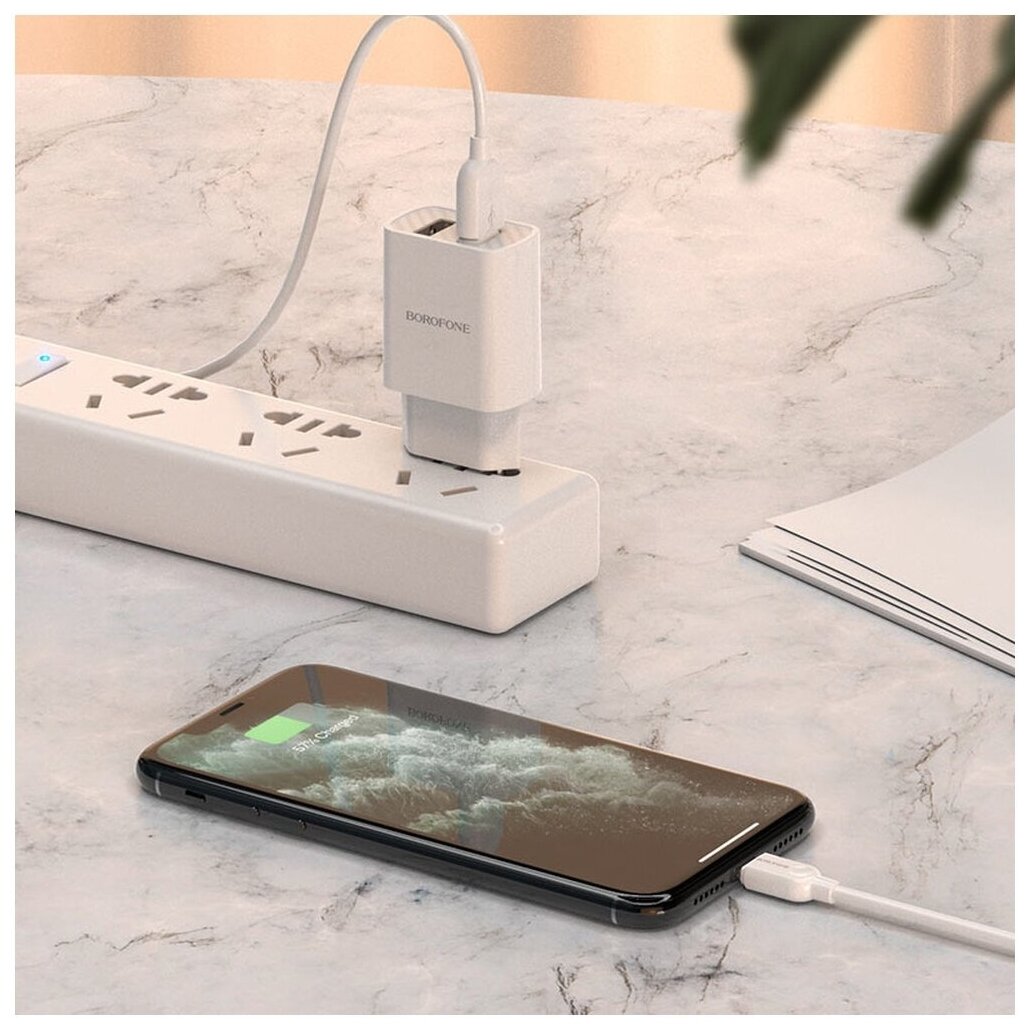 Borofone Сетевое зарядное устройство Borofone BA53A, 2xUSB, 2.1 А, кабель Type-C, белое