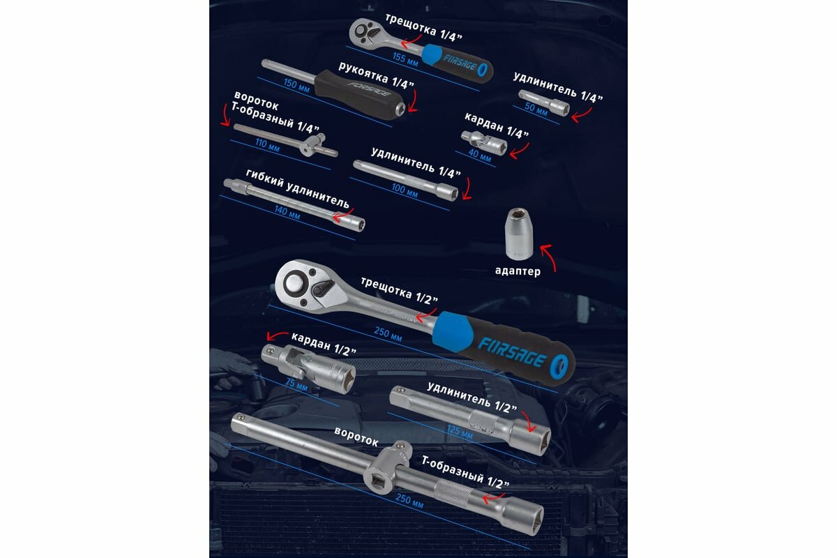 Набор Инструмента 6-Гранных Головок 1/4" & 1/2" И Ключей 82 Предмета FORSAGE арт. F-4821-5