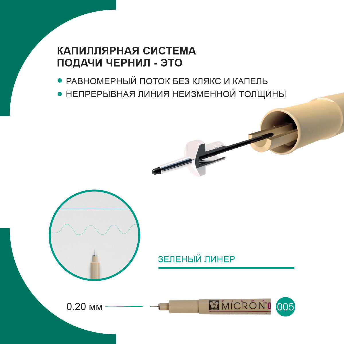 СохранитьРучка-линер капиллярная Pigma Micron, 0,2 мм., цвет чернил: зеленый интересное: