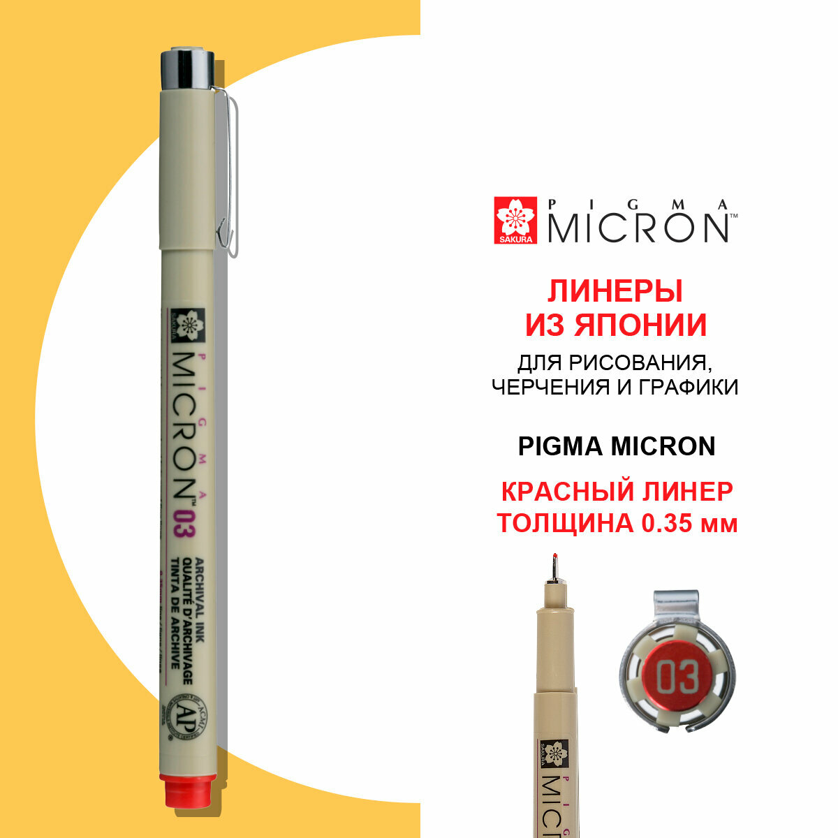 Ручка капиллярная Sakura Pigma Micron 03, толщина линии 0.35 мм, цвет красный