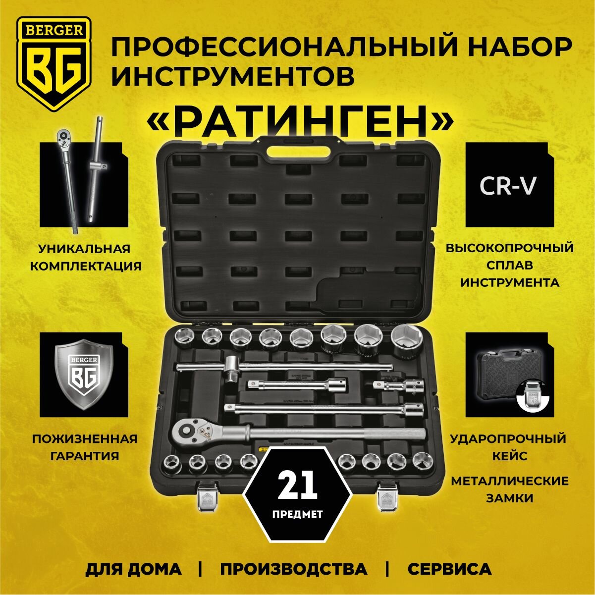 Набор инструментов для грузовиков BERGER 21 предмет ¾,” «ратинген» BG021-34