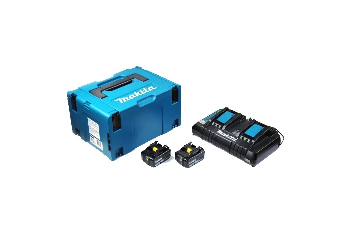 Купить Набор аккумуляторов и ЗУ (DC18RD + BL1860B (18В,6.0Ач, Li-ion) х 2шт + кейс MakPac) Makita 198080-9