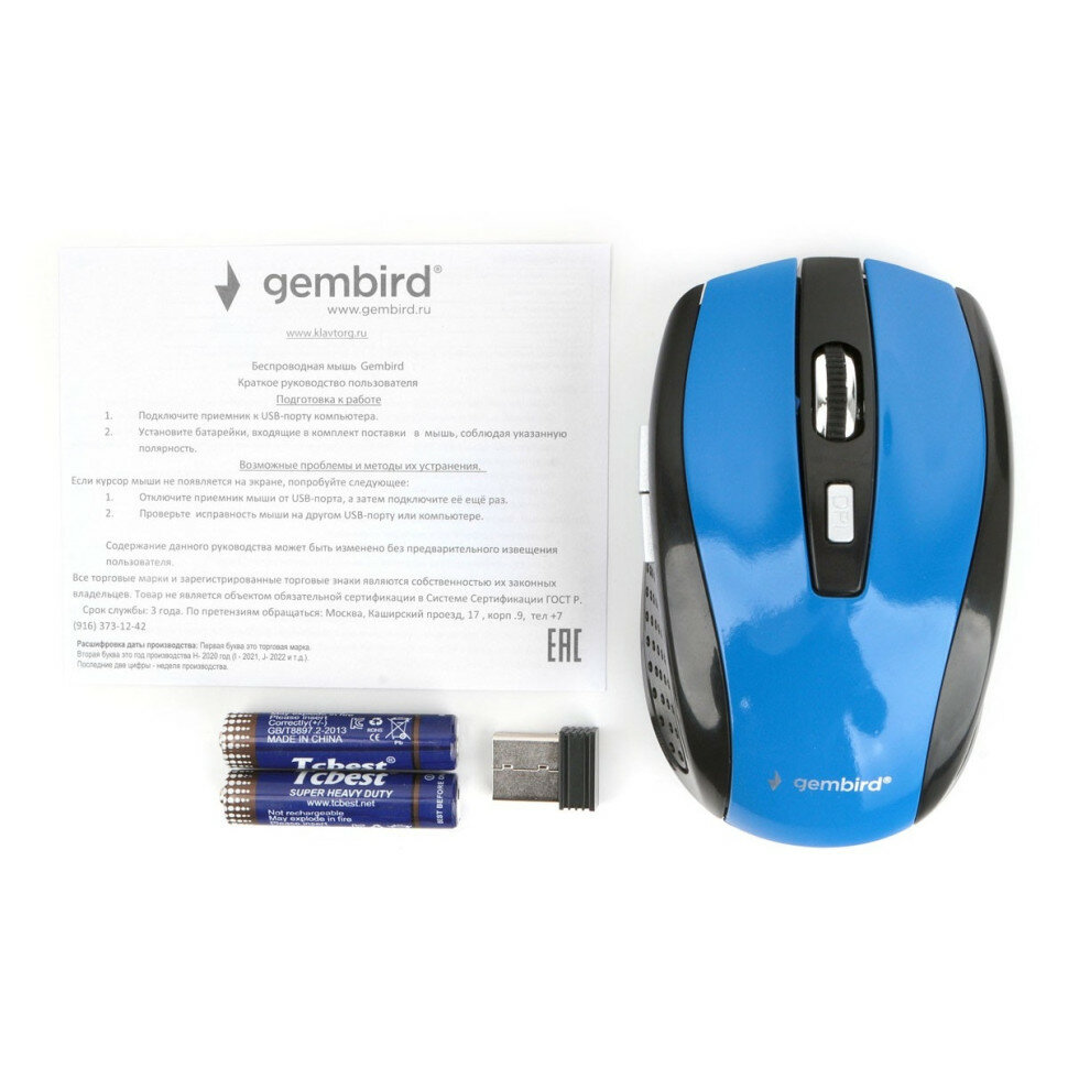 СохранитьМышь беспроводная Gembird MUSW-330-1 синий, 2400 dpi, радиоканал, USB, кнопки - 6 интересное: