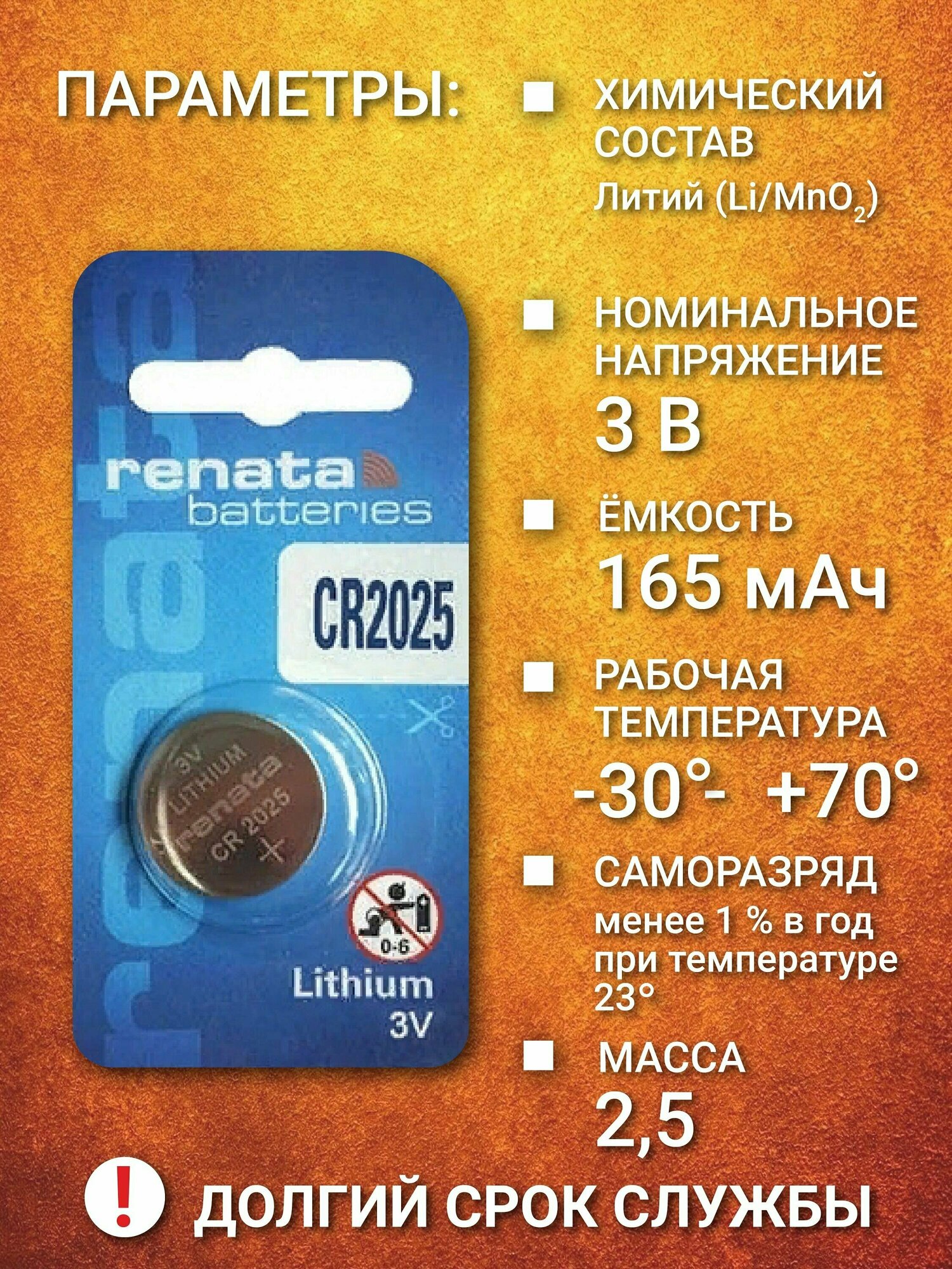 | Типоразмер | CR2025 |