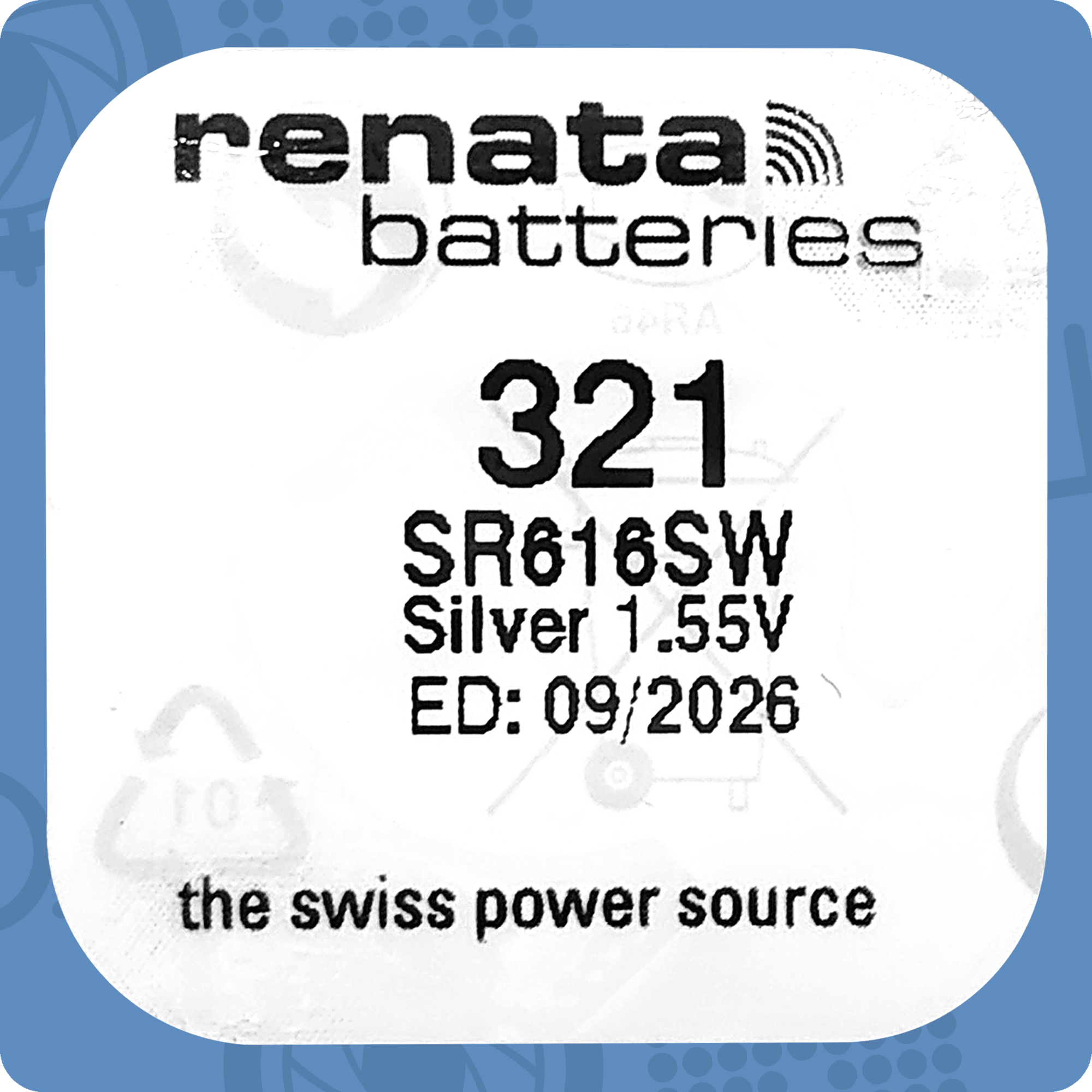 Батарейка для часов Renata 321 SR 616 SW 1.55V, 14.5mAh, 6.8x1.6mm, в блистере 1 шт.