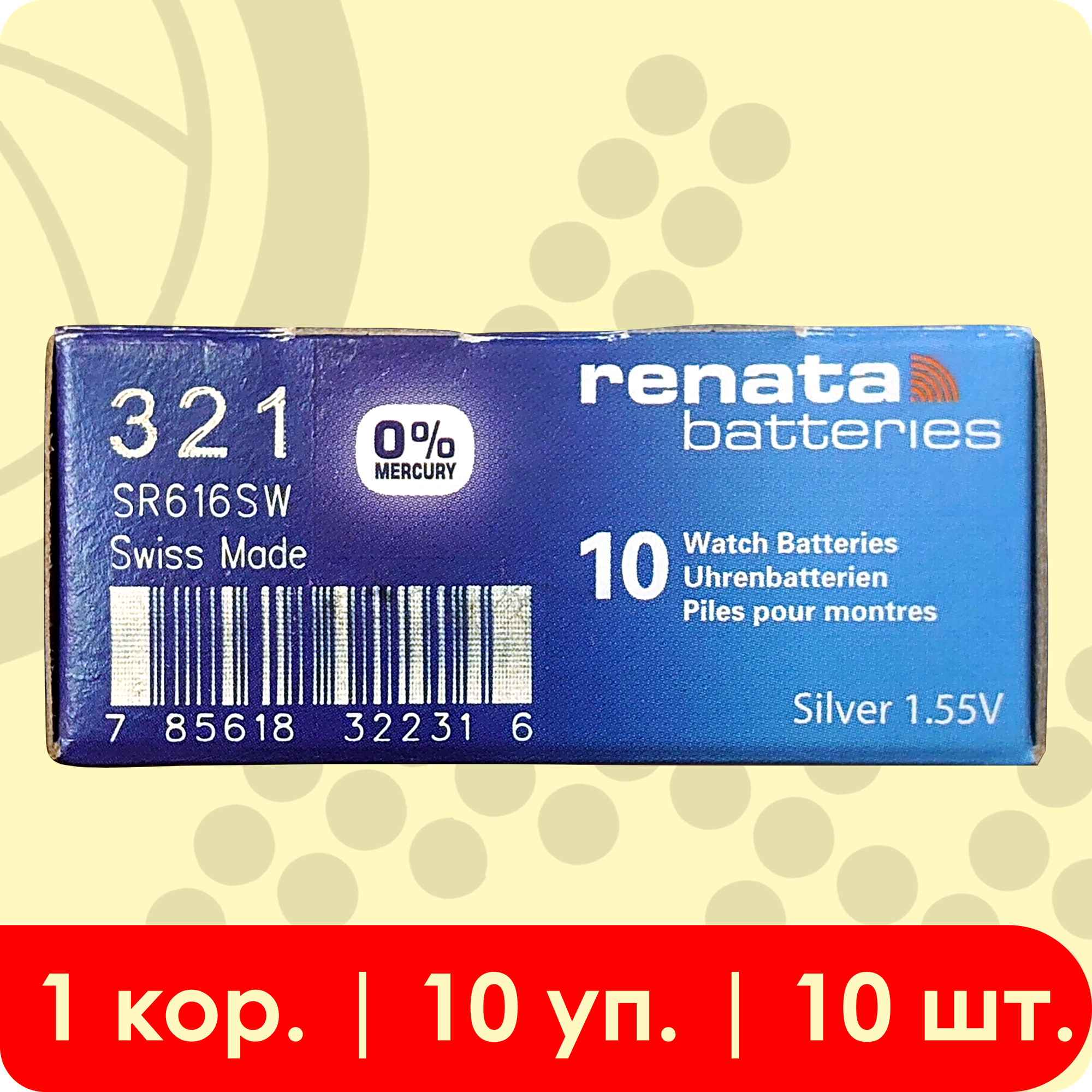 Батарейка Renata 321 10шт/Элемент питания рената 321 В10 (SR616SW)(без ртути) 10шт