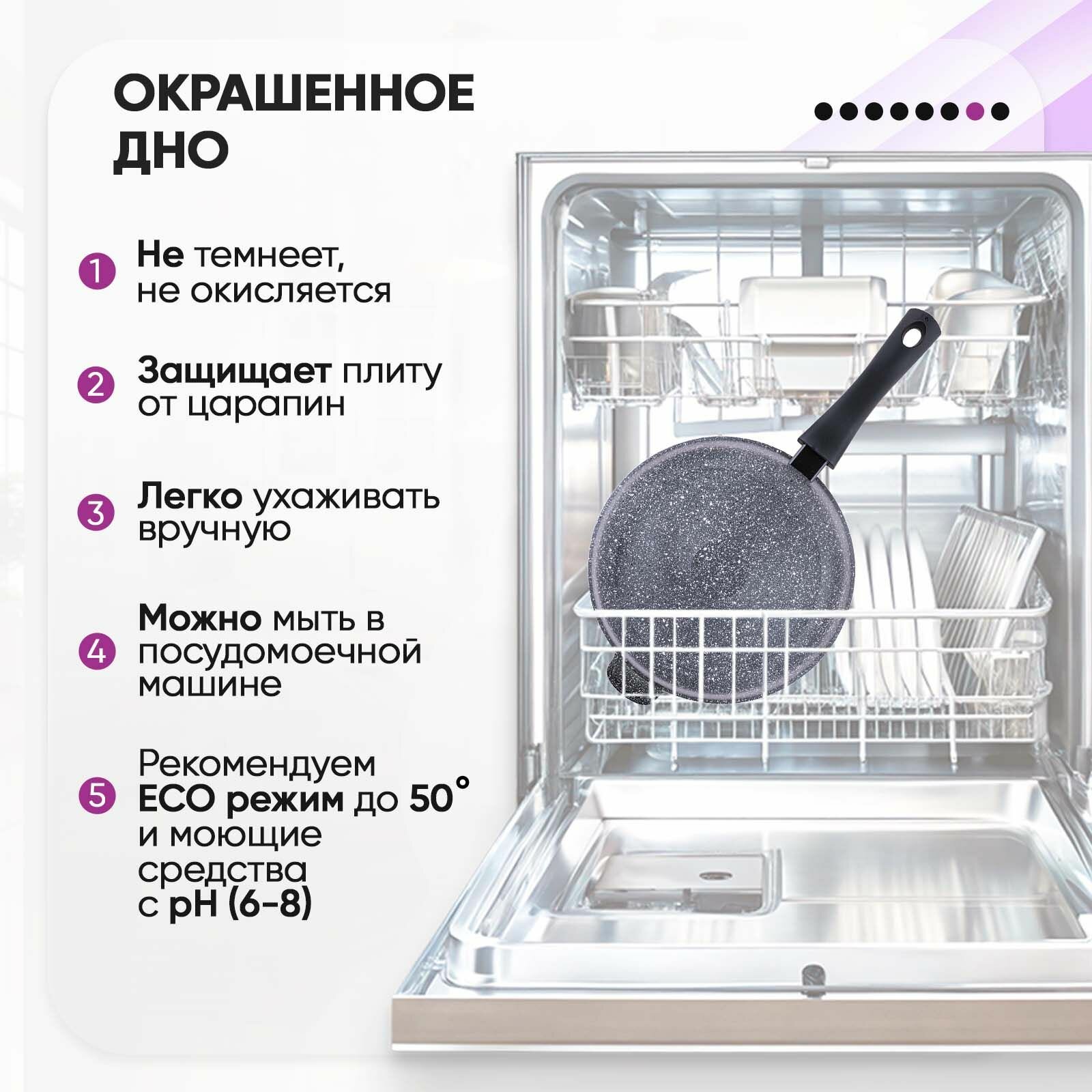 | Особенности | мытье в посудомоечной машине / ненагревающаяся ручка / съемная ручка |