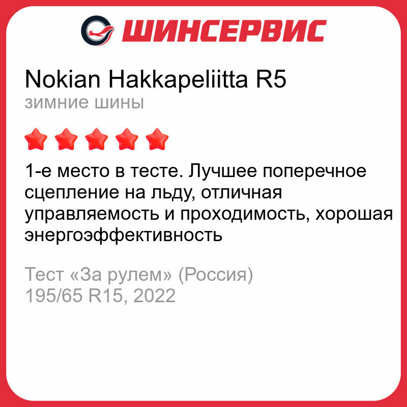 Ниже Вы можете прочитать отзывы на Зимняя нешипованная шина Nokian Hakkapeliitta R5 195/65 R15 95R, ознакомится с подробными характеристиками, посмотреть интересные обзоры и фотографии на Зимняя нешипованная шина Nokian Hakkapeliitta R5 195/65 R15 95R.