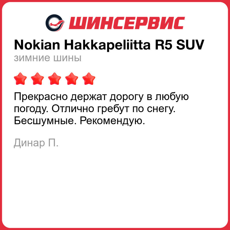 Ниже Вы можете прочитать отзывы на Зимняя нешипованная шина Nokian Hakkapeliitta R5 SUV 265/65 R17 116R, ознакомится с подробными характеристиками, посмотреть интересные обзоры и фотографии на Зимняя нешипованная шина Nokian Hakkapeliitta R5 SUV 265/65 R17 116R.