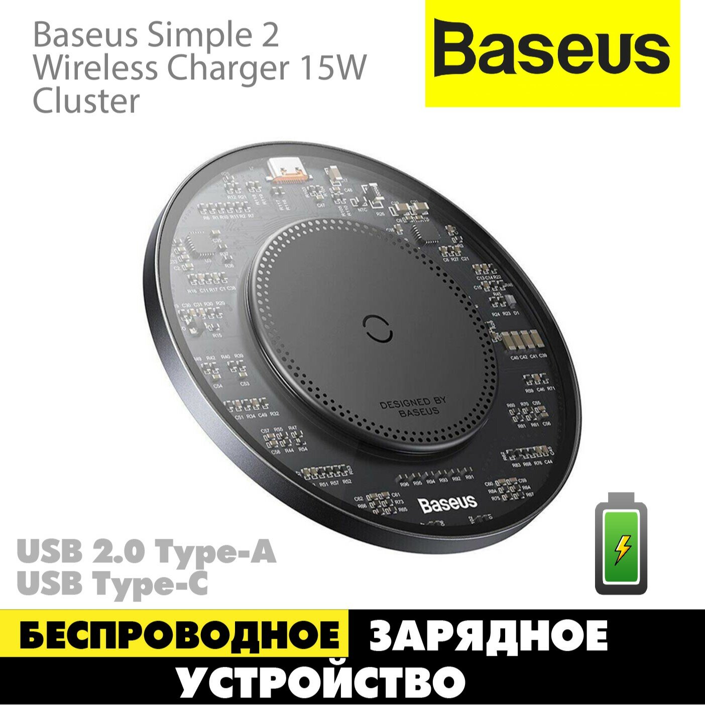 СохранитьБеспроводное зарядное устройство Baseus Simple 2 Wireless Charger 15W Cluster Black CCJJ050001 интересное:
