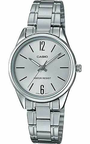 LTP-V005L-7A Casio наручные часы кварцевые WR30 (3 атм) женские серебряный подсветка стрелок минеральное стекло