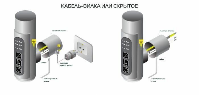 | Вид подключения | электропровод с вилкой, скрытое электрическое соединение |
