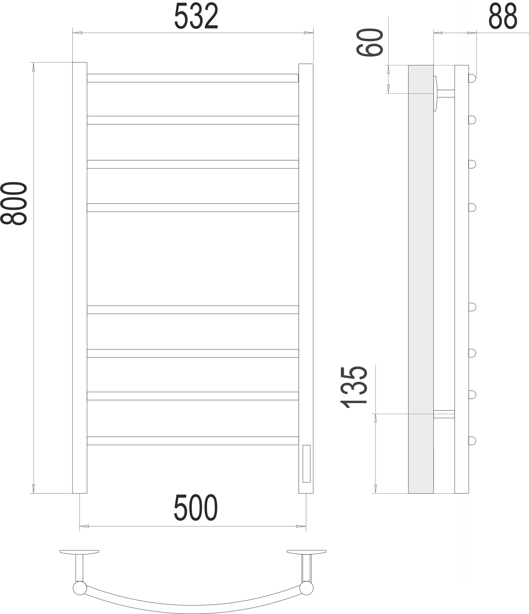 Полотенцесушитель классик П8 500*800, БП500, хром, терминус