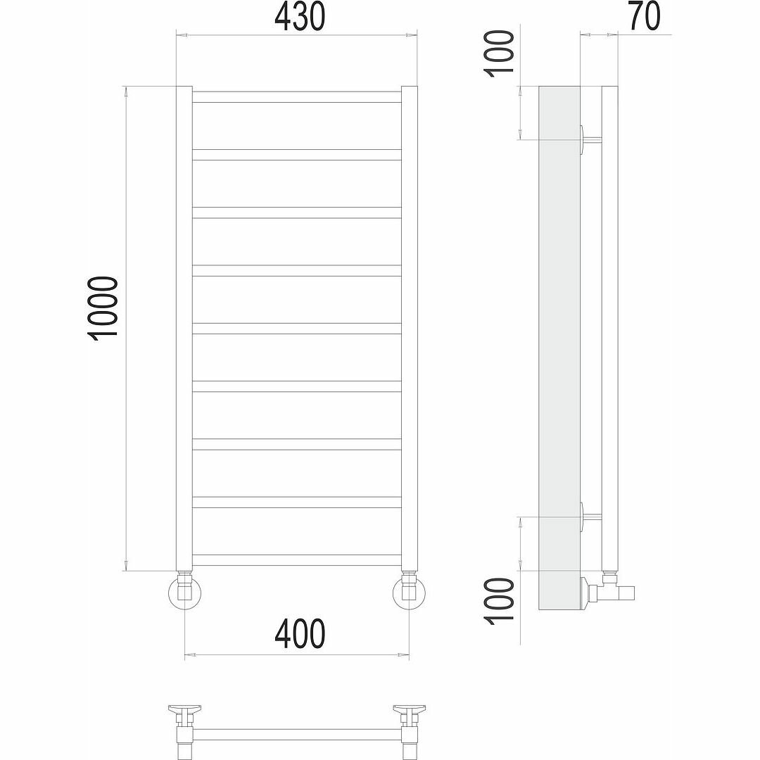 Купить Полотенцесушитель водяной нерж сталь Лесенка (1/2") ВР 400х1000мм 9П нижнее подключение б/к Контур Терминус 4670078529671