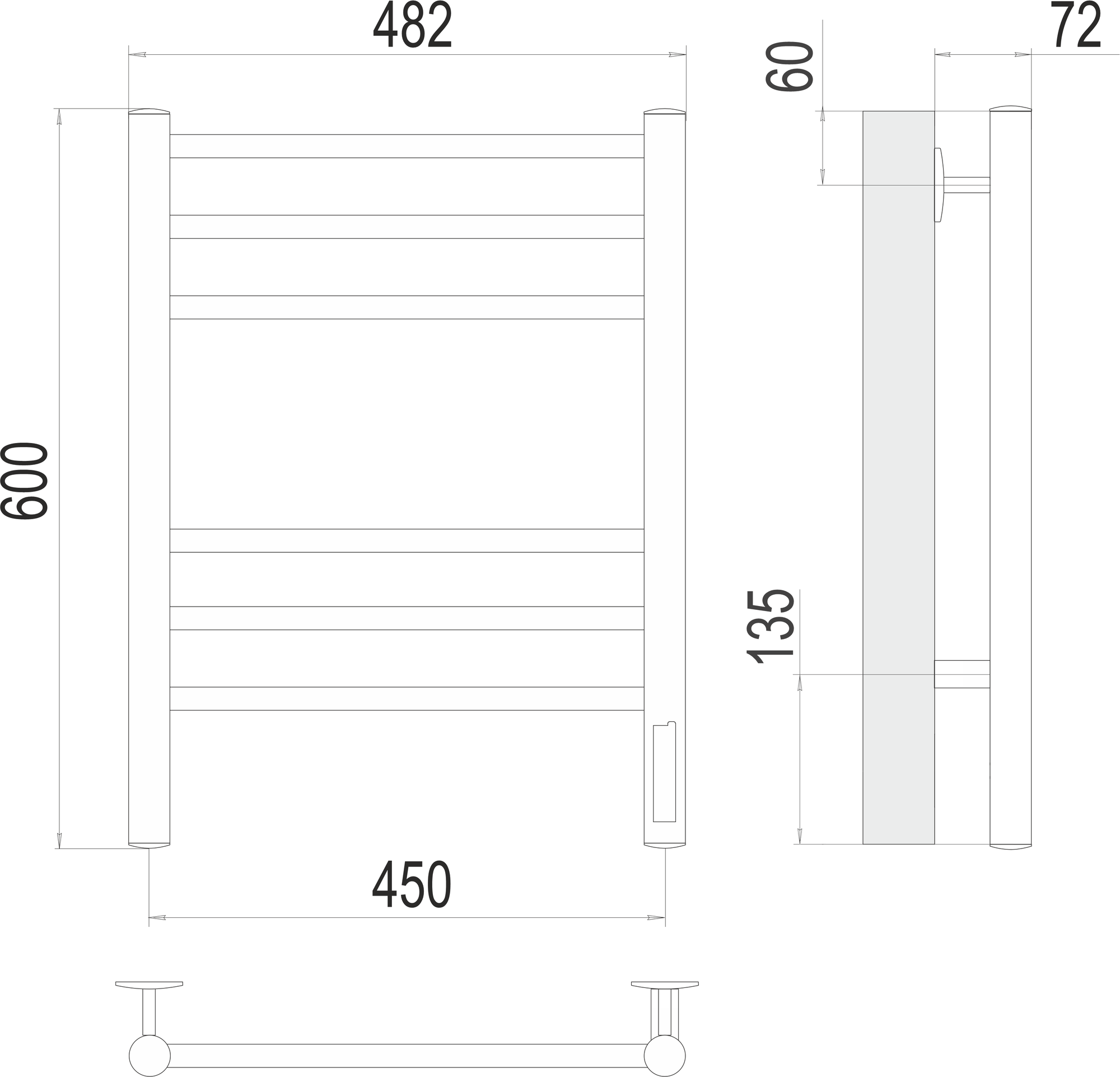 Полотенцесушитель TERMINUS Классик П6 (ШВ:450х600) электро, КС 9003 матовый, диммер встроен, правый