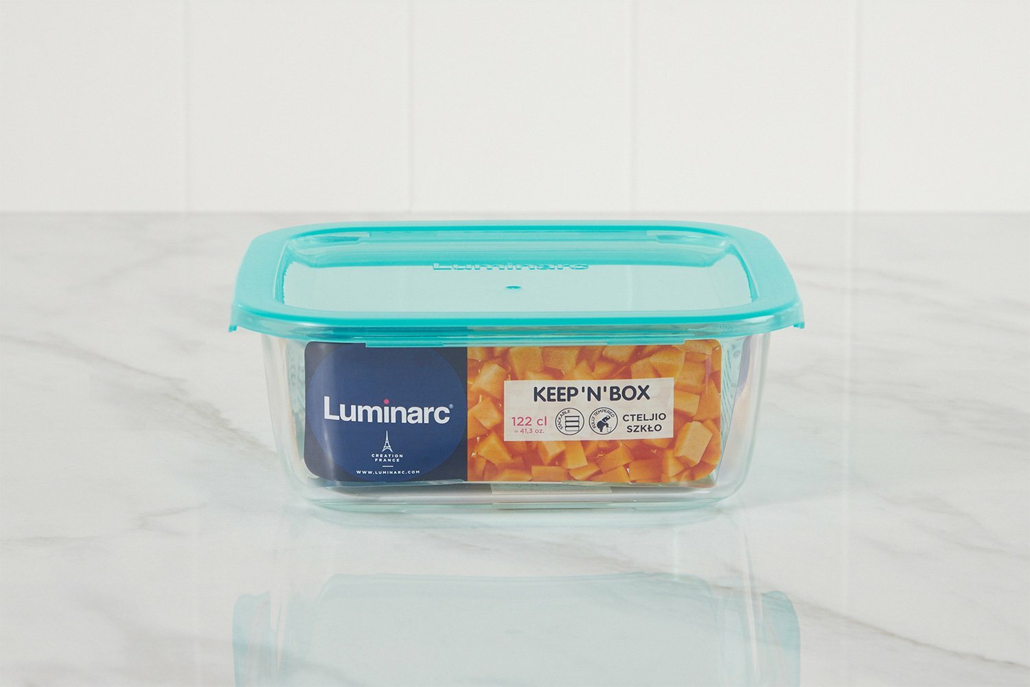 Купить Контейнер стеклянный для продуктов, 1220 мл, квадратный KEEP'N'BOX LUMINARC, стекло/крышка пластиковая бирюзовая