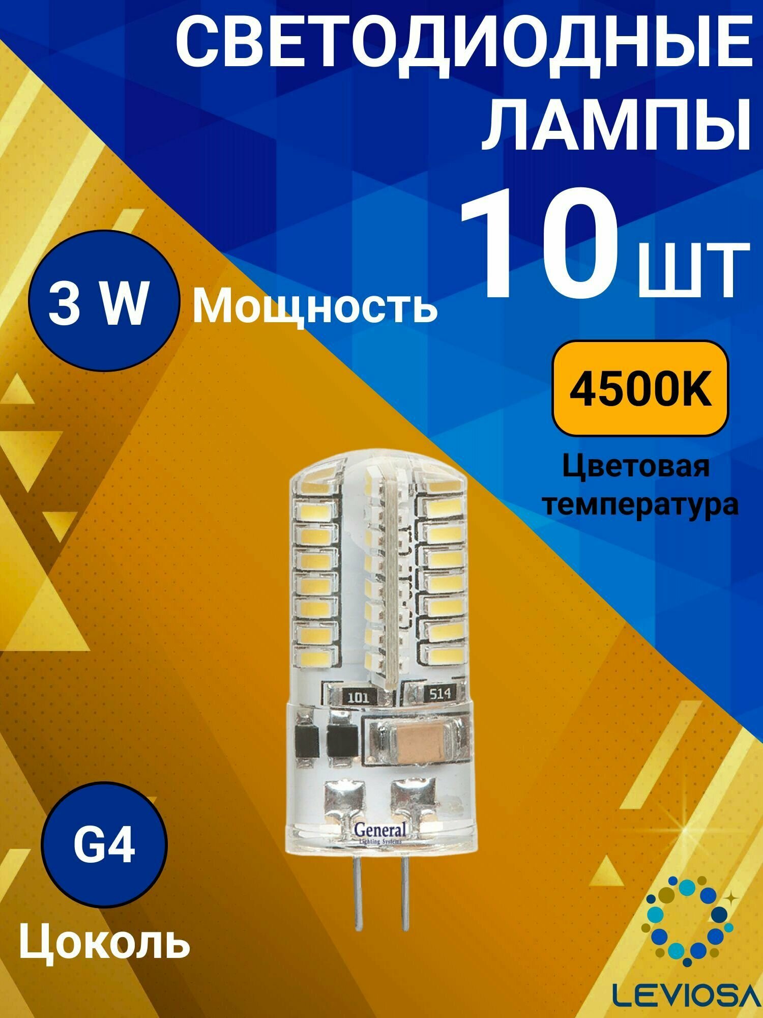 Светодиодные лампы, General, Комплект из 10 шт., Мощность 3 Вт, Цоколь G4, Дневной свет
