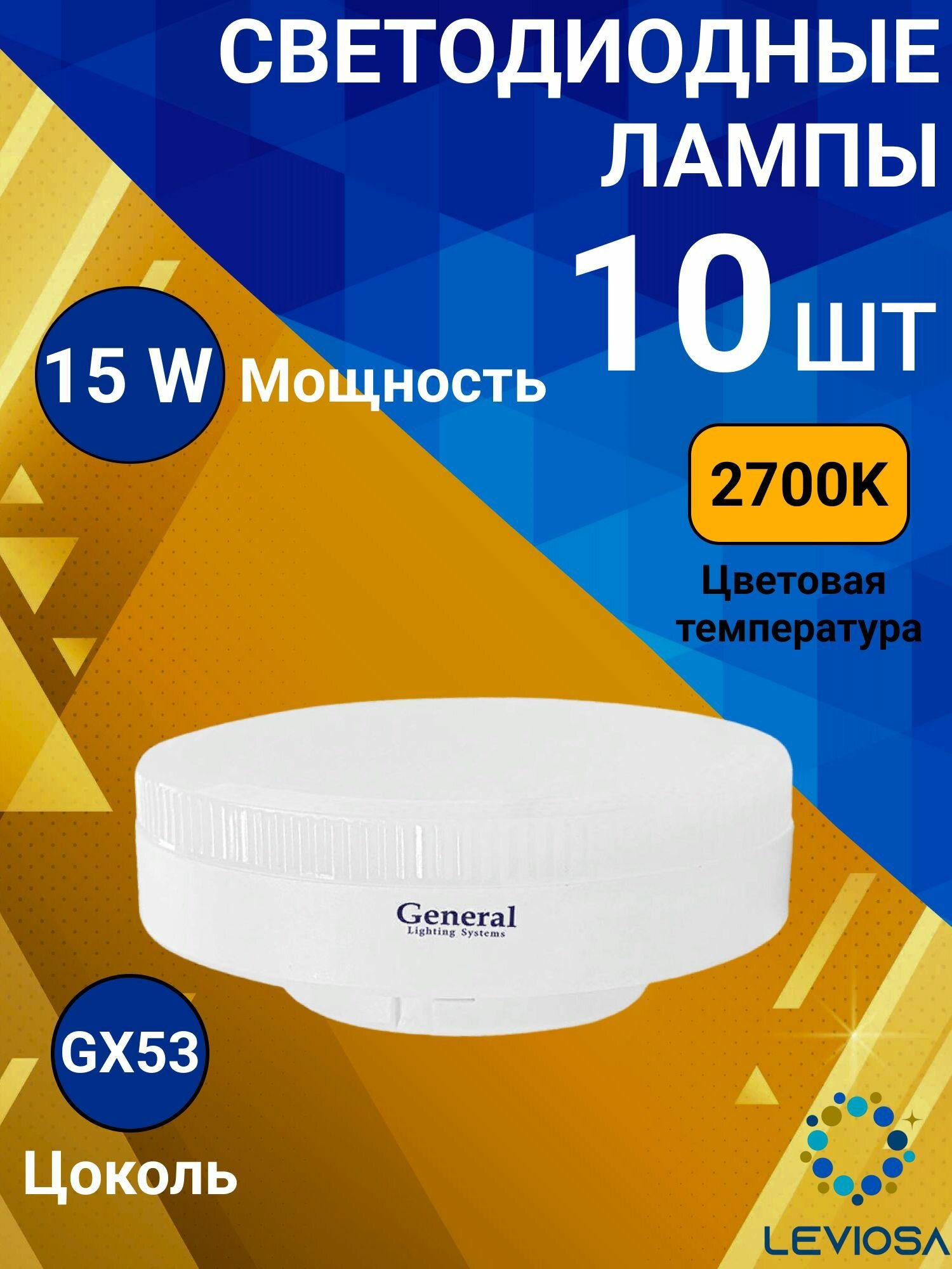 Купить Лампочка светодиодная, General, Комплект из 10 шт., 15 Вт, Цоколь GX53, 2700К, Форма лампы Шайба, GX53