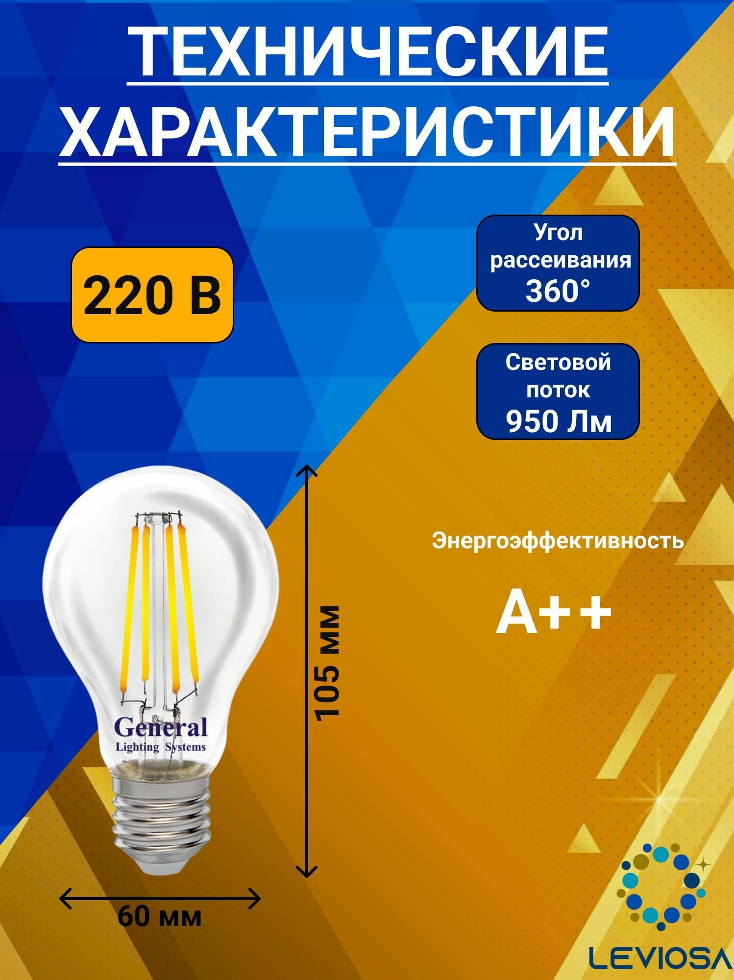 СохранитьЛампочка светодиодная филаментная диммируемая, General, Комплект из 6 шт., 13 Вт, Цоколь E27, 4500К, Форма лампы Груша, A60S интересное: