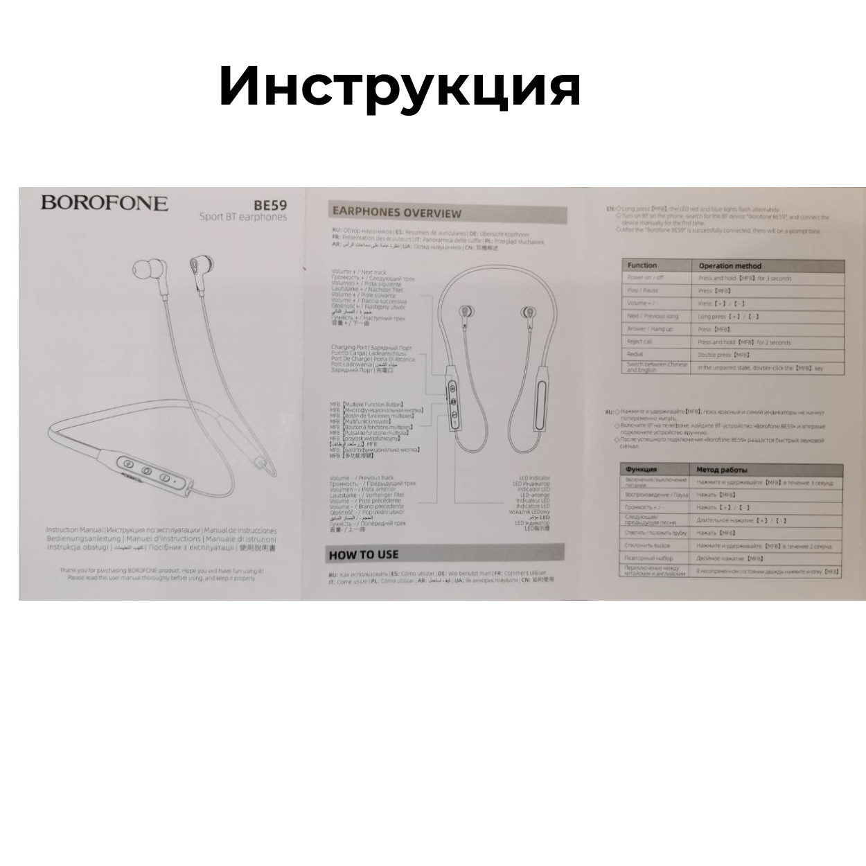 Наушники беспроводные Borofone BE59 с шейным силиконовым ободом, 30 часов работы, черные