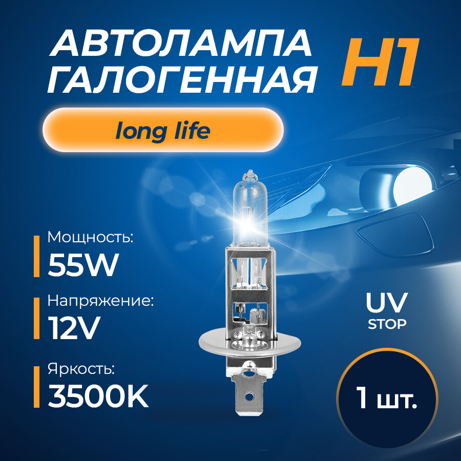 Купить Лампа галогенная Kraft Pro Long Life H1 12V 55W, 1