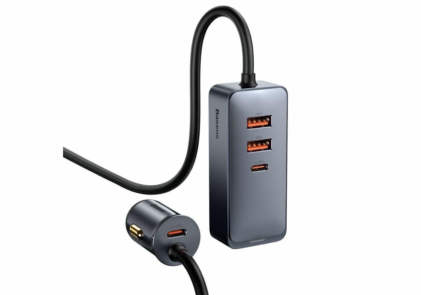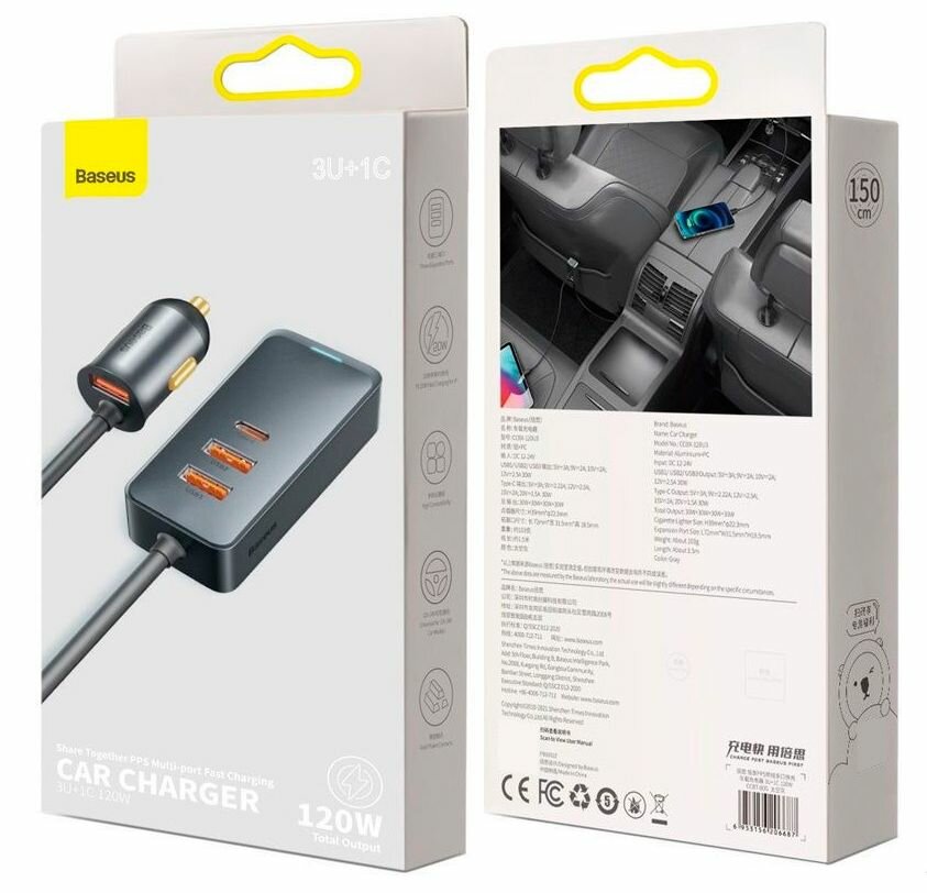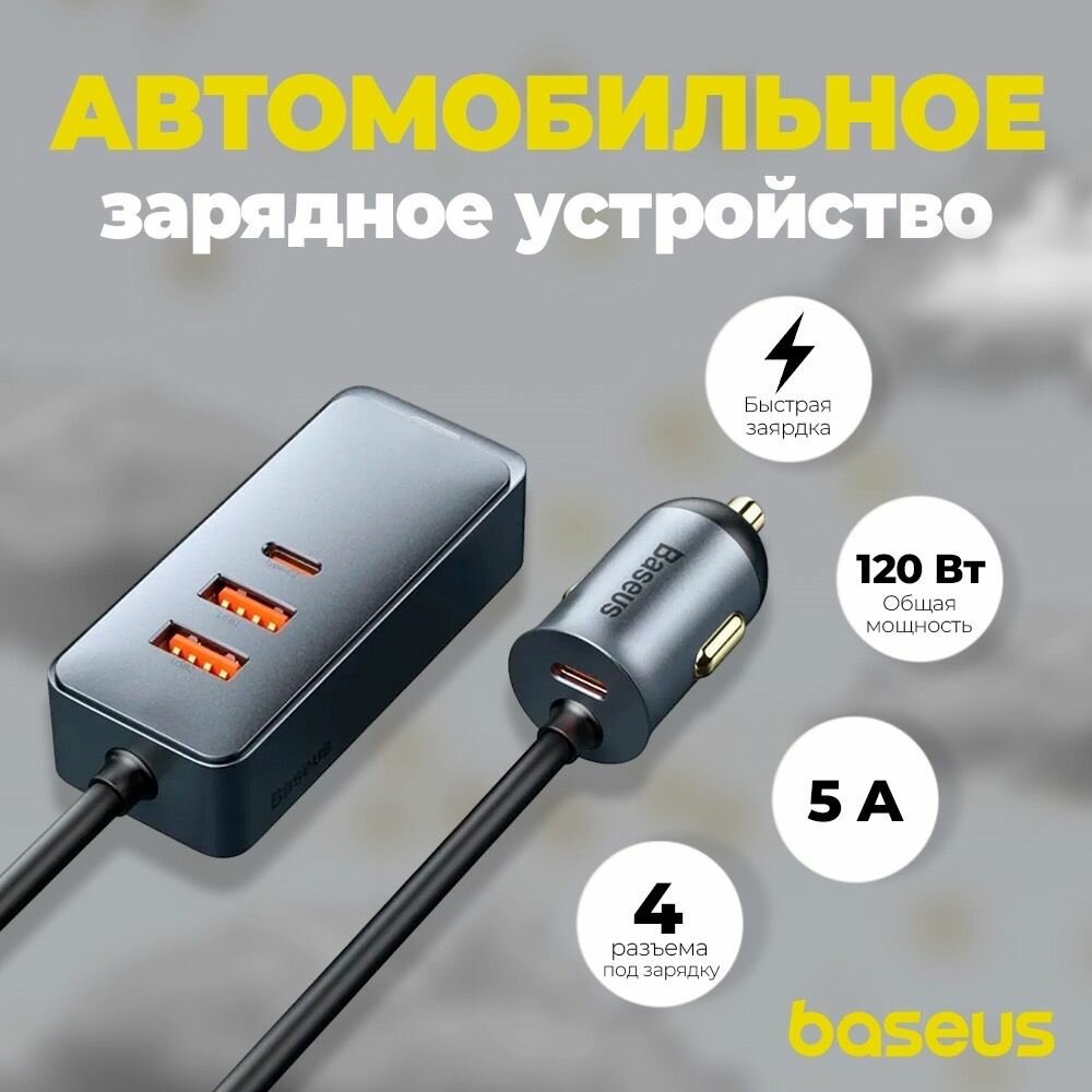 Автомобильное зарядное устройство Baseus Share Together PPS multi-port Fast charging car charger with extension cord 120W 3U+1C Gray