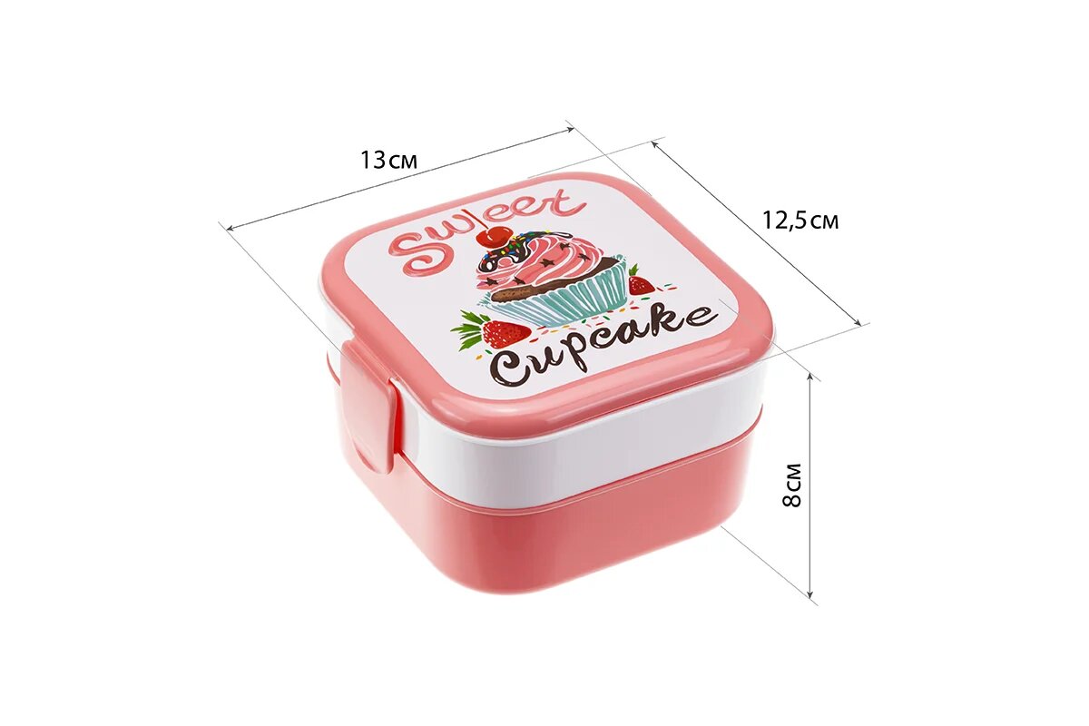 Ланч - бокс "Капкейки", 400+400 мл, 12.5x13x8.5 см, 2 отделения, пластик, цвет бело-розовый