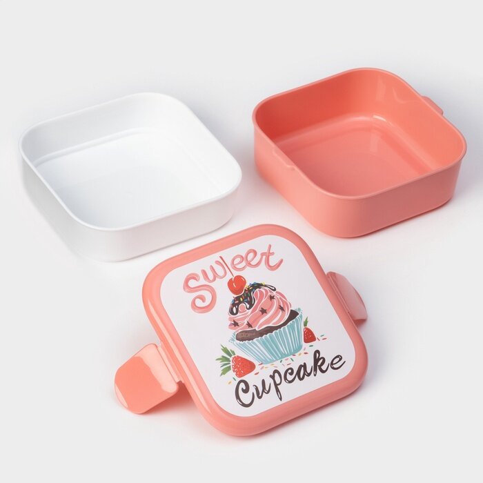 Купить Ланч - бокс "Капкейки", 400+400 мл, 12.5x13x8.5 см, 2 отделения, пластик, цвет бело-розовый