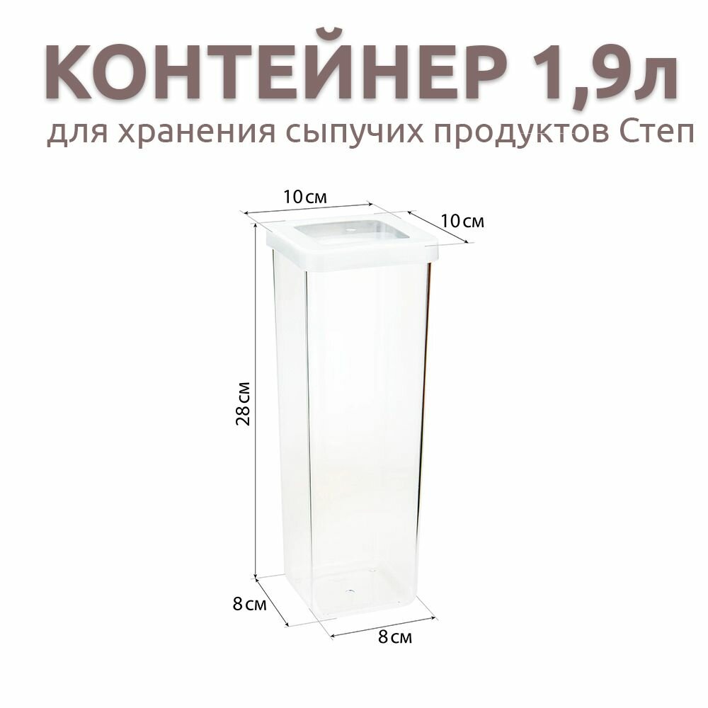 Контейнер для сыпучих продуктов «Степ», 1.9 л, 10×10×28 см, пластик, крышка белая
