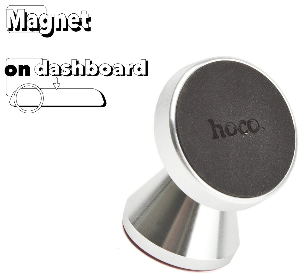 Купить Автомобильный держатель HOCO CA46 Metal magnetic, магнитный, на приборную панель, серебряный