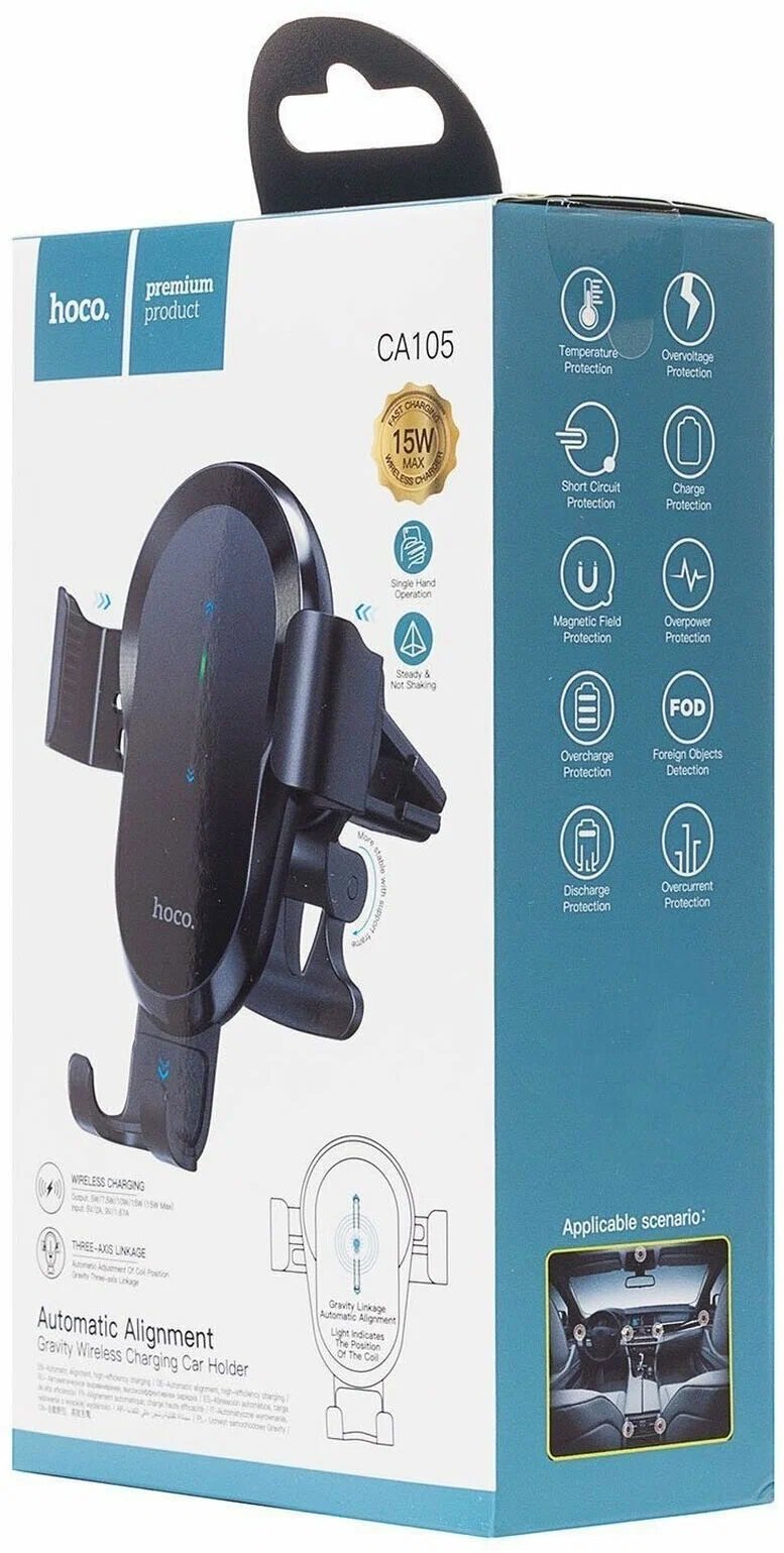 Держатель в авто с БЗУ HOCO CA105 Guide гравитационный, в воздуховод, 15W (черный)