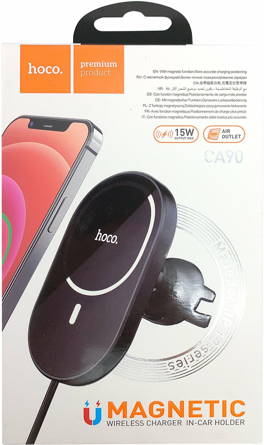 Держатель c беспроводной зарядкой в воздуховод Hoco CA90 (MagSafe) 15W магнитный черный