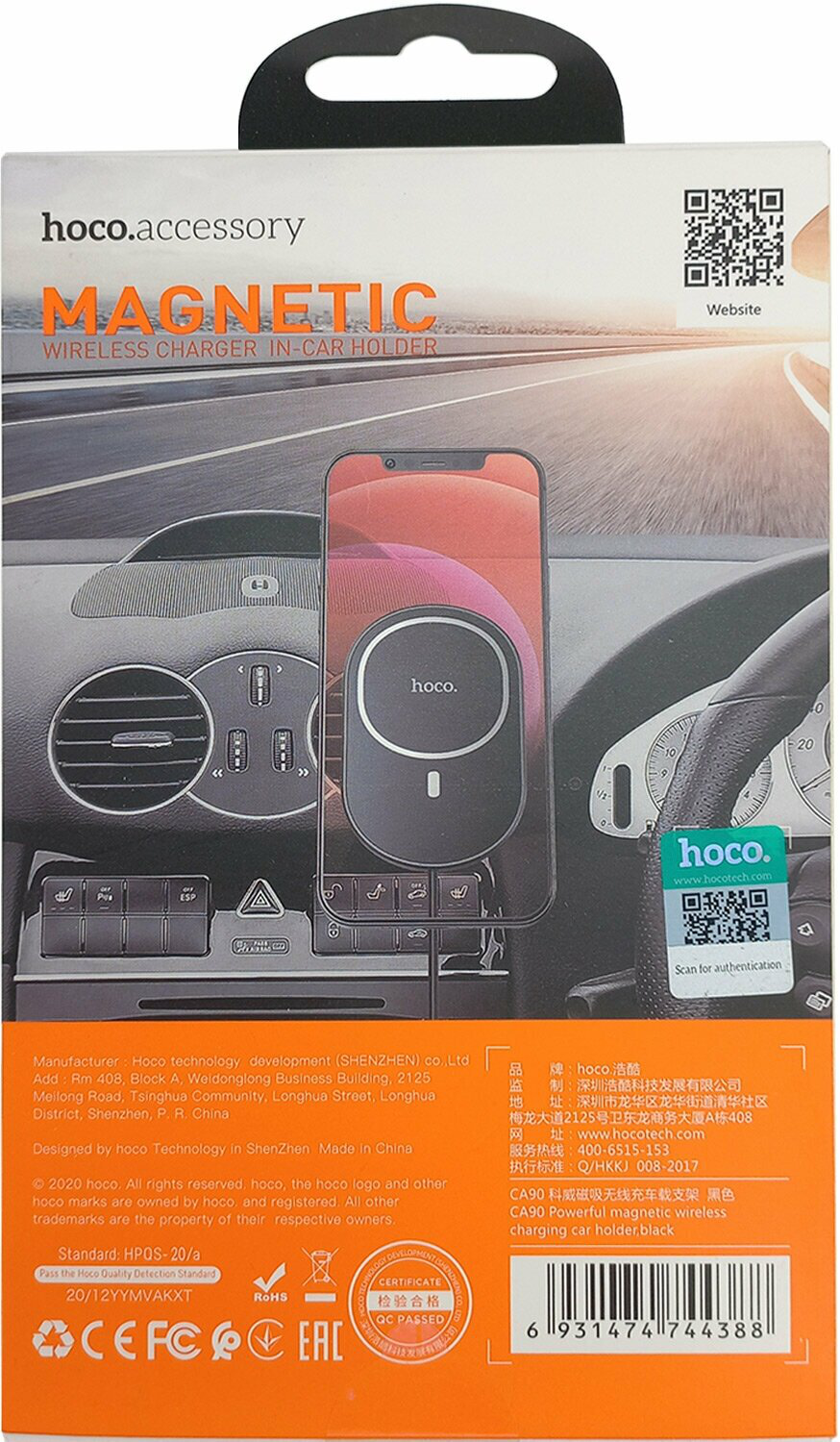 Автомобильный держатель Hoco (CA90) для смартфона Powerful magnetic wireless charger in-car holder (черный)