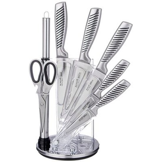 Набор ножей Agness с ножницами и мусатом на вращающейся платиковой подставке, 8 предметов