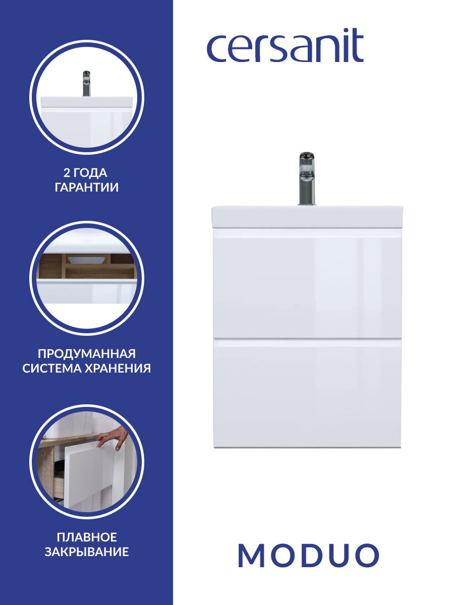 Тумба под раковину Cersanit MODUO подвесная 60 белая 64140