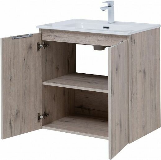 Купить Тумба с раковиной Алвита New 70 2 дверцы подвесная дуб веллингтон белый