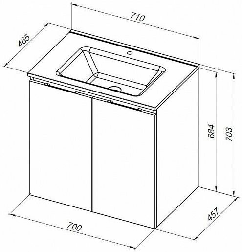 Тумба с раковиной Алвита New 70 2 дверцы подвесная белая матовая