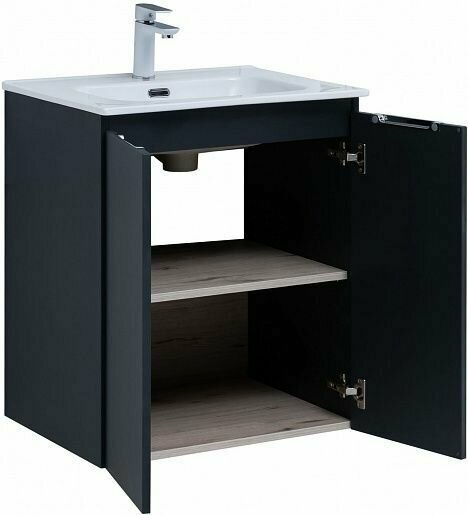 Купить Тумба с раковиной Алвита New 60 2 дверцы подвесная антрацит матовая