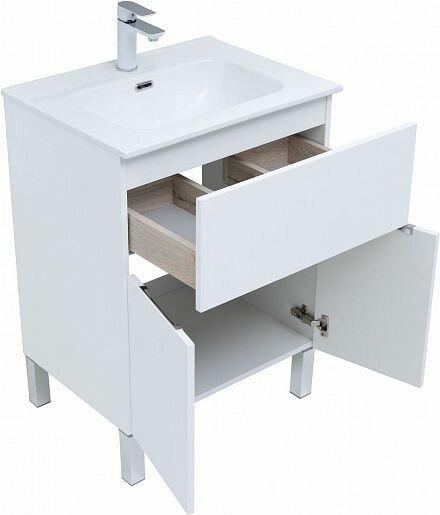 Купить Тумба с раковиной Алвита New 60 1 ящик 2 дверцы белая матовая