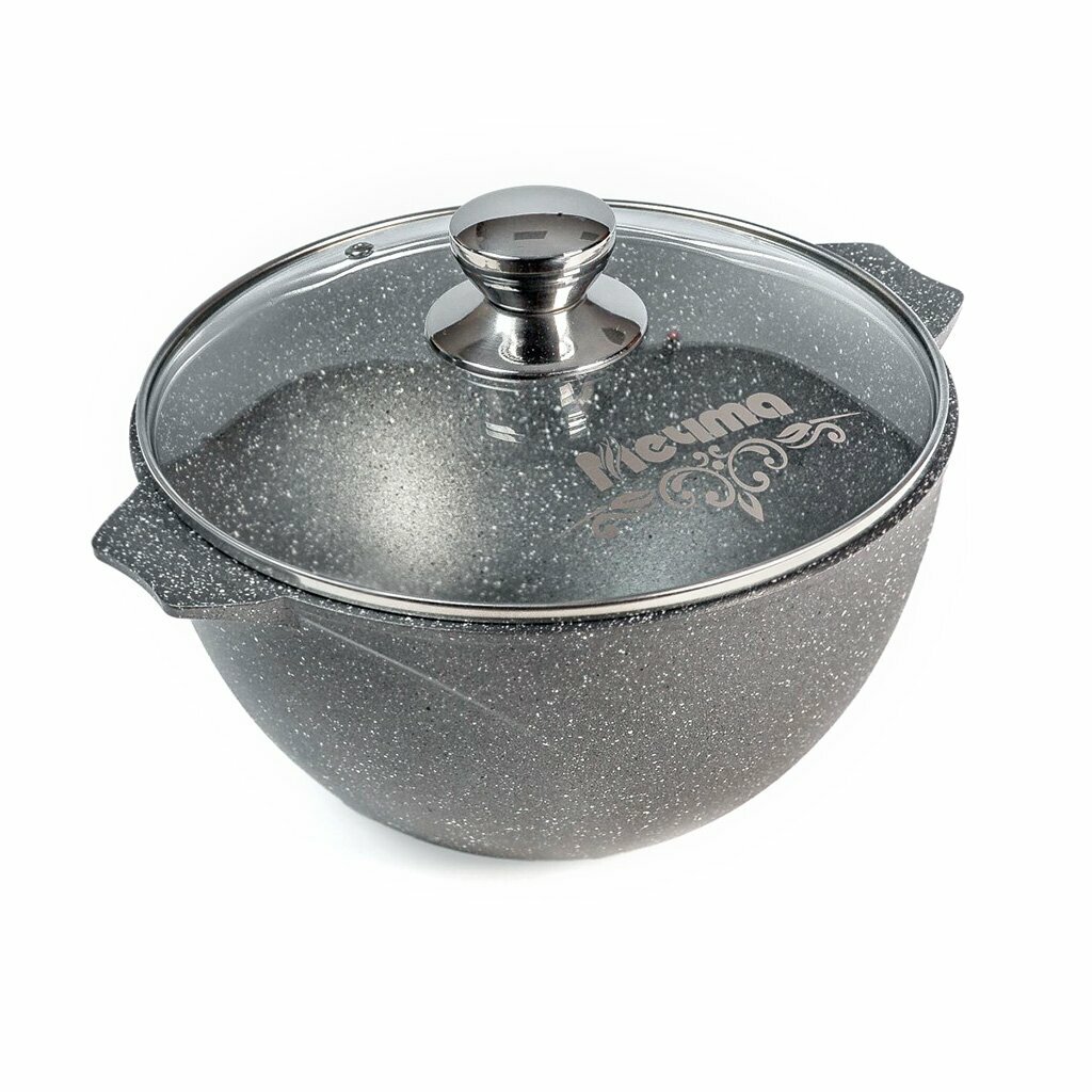 Казан Мечта Гранит со стеклянной крышкой антипригарное покрытие алюминий 5л / посуда для газовых и электрических плит