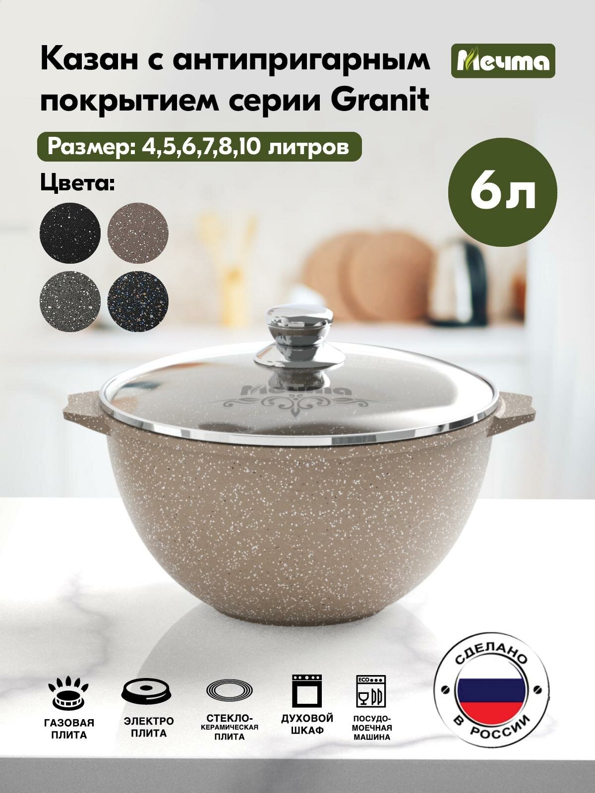 Казан для плова Мечта 6,0 л АП гранит brown 56806