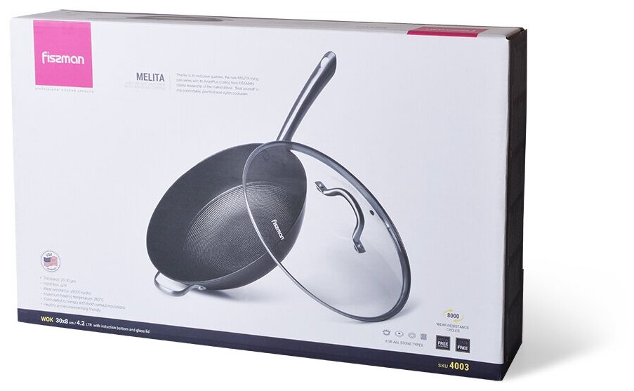 Сковорода-вок чугунная 30 см / 4,2 л FISSMAN Melita, индукционная
