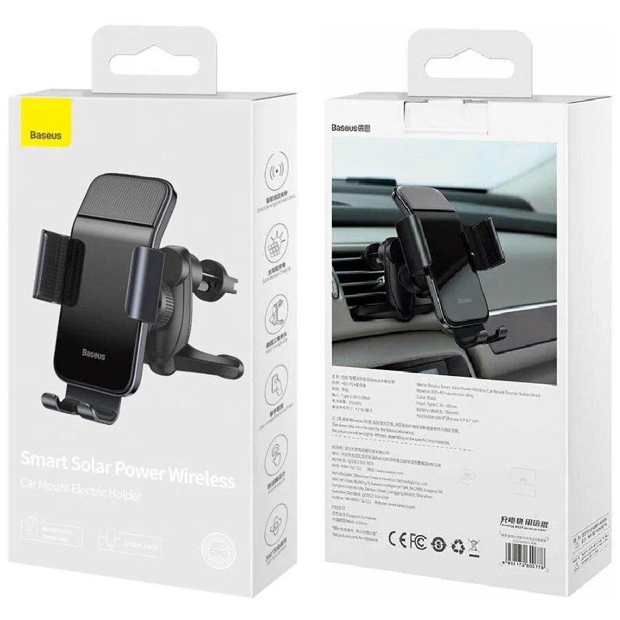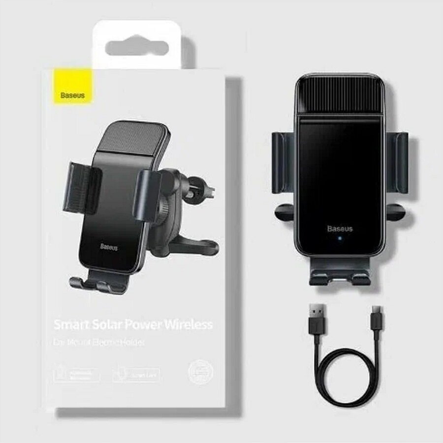 Автомобильный держатель BASEUS Smart Solar Power Wireless, на солнечных батареях, черный