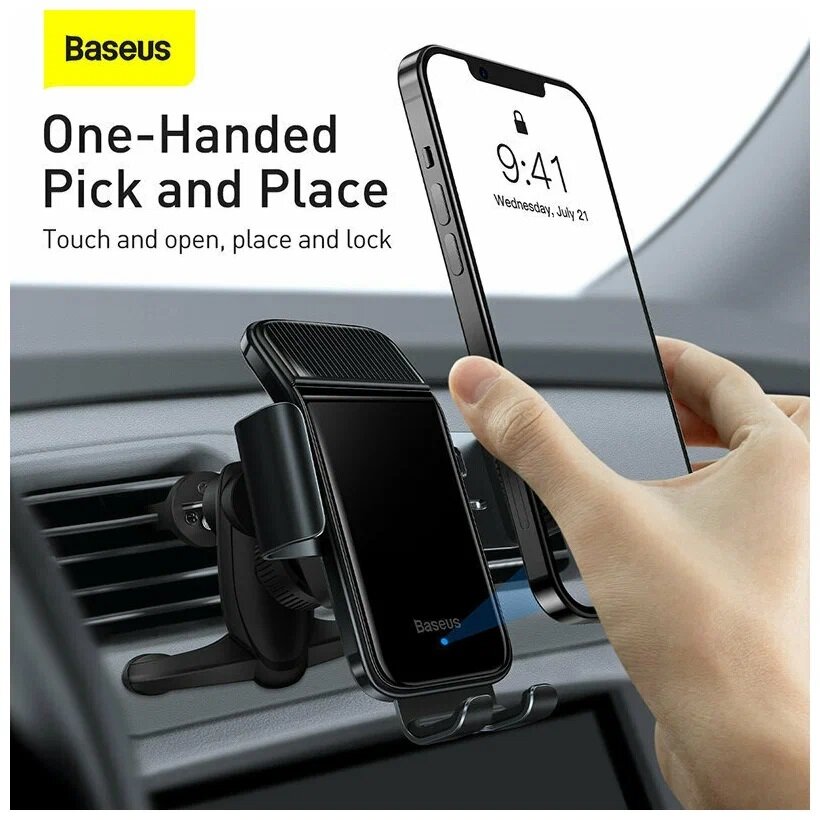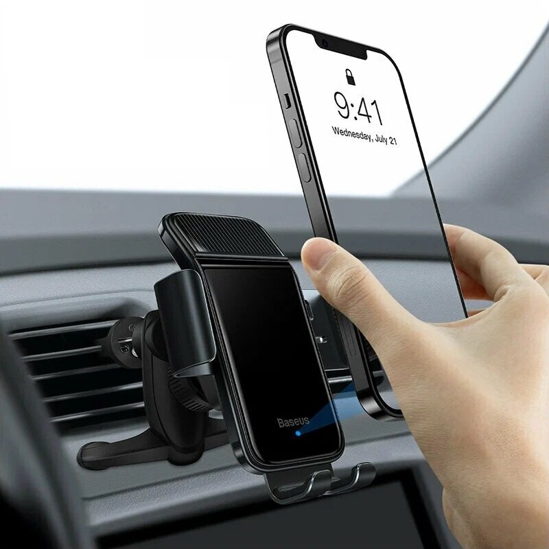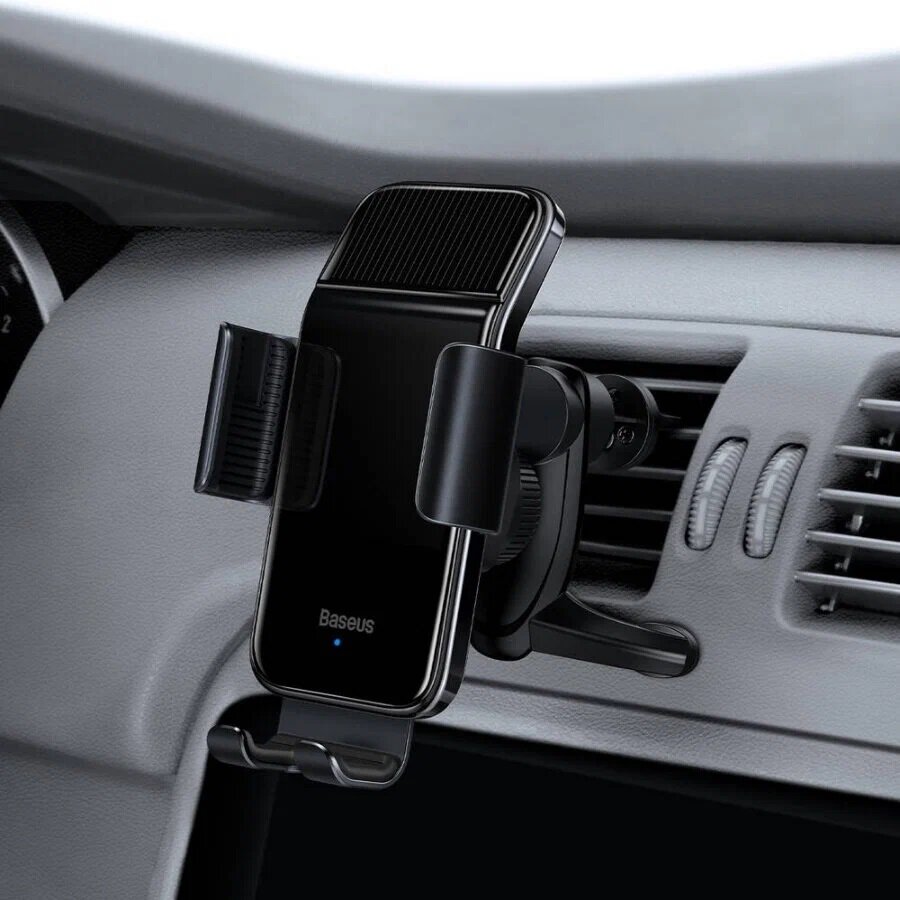 Автомобильный держатель BASEUS Solar Power Wireless на солнечных батареях, зажимной с беспроводной зарядкой, на воздуховод, черный