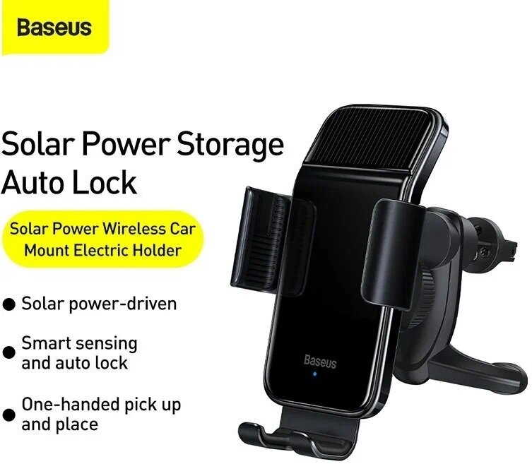 Автомобильный держатель с солнечной батарей Baseus Smart Solar Power Wireless Car Mount Electric Holder Black (SUZG000001) (black)