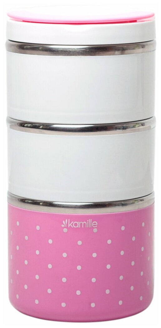 Ланч бокс тройной Kamille КМ-2104 круглый (3 емкости, объем 1480 мл.) (24 / розовый)