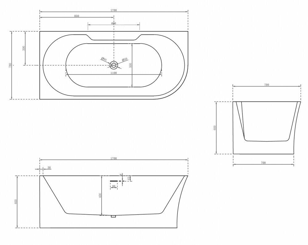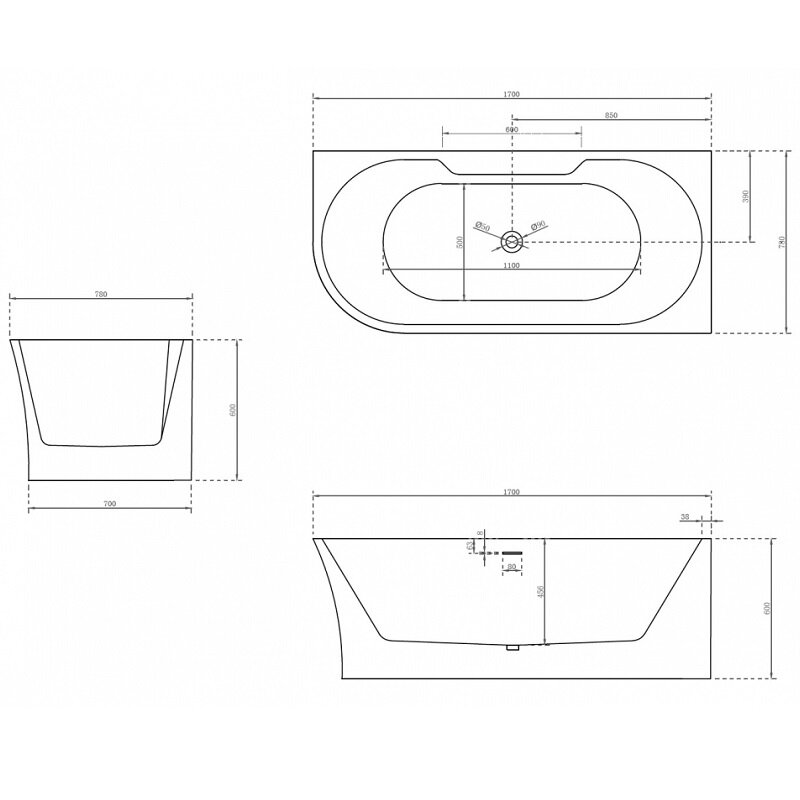 Акриловая ванна Abber AB9335-1.7 L 170x78