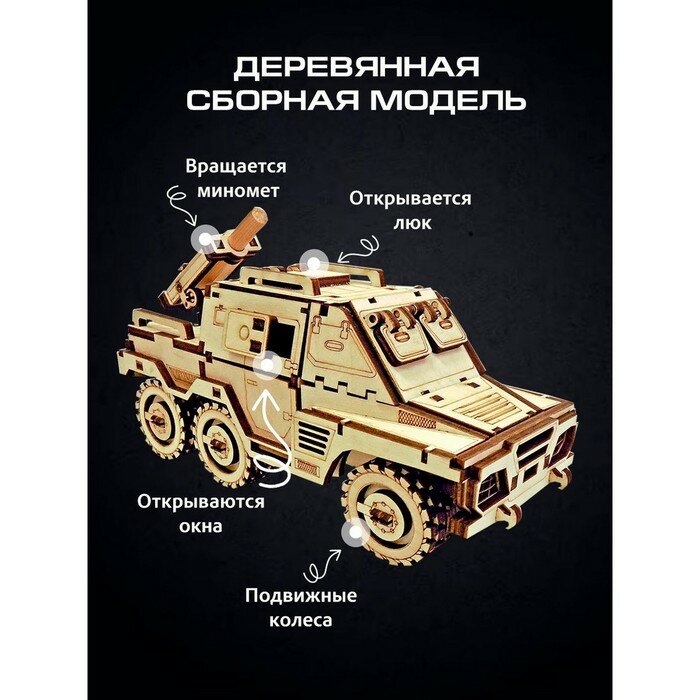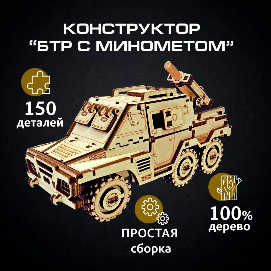 Деревянная модель Сборная "БТР с минометом", конструктор из дерева, военная техника интересное: