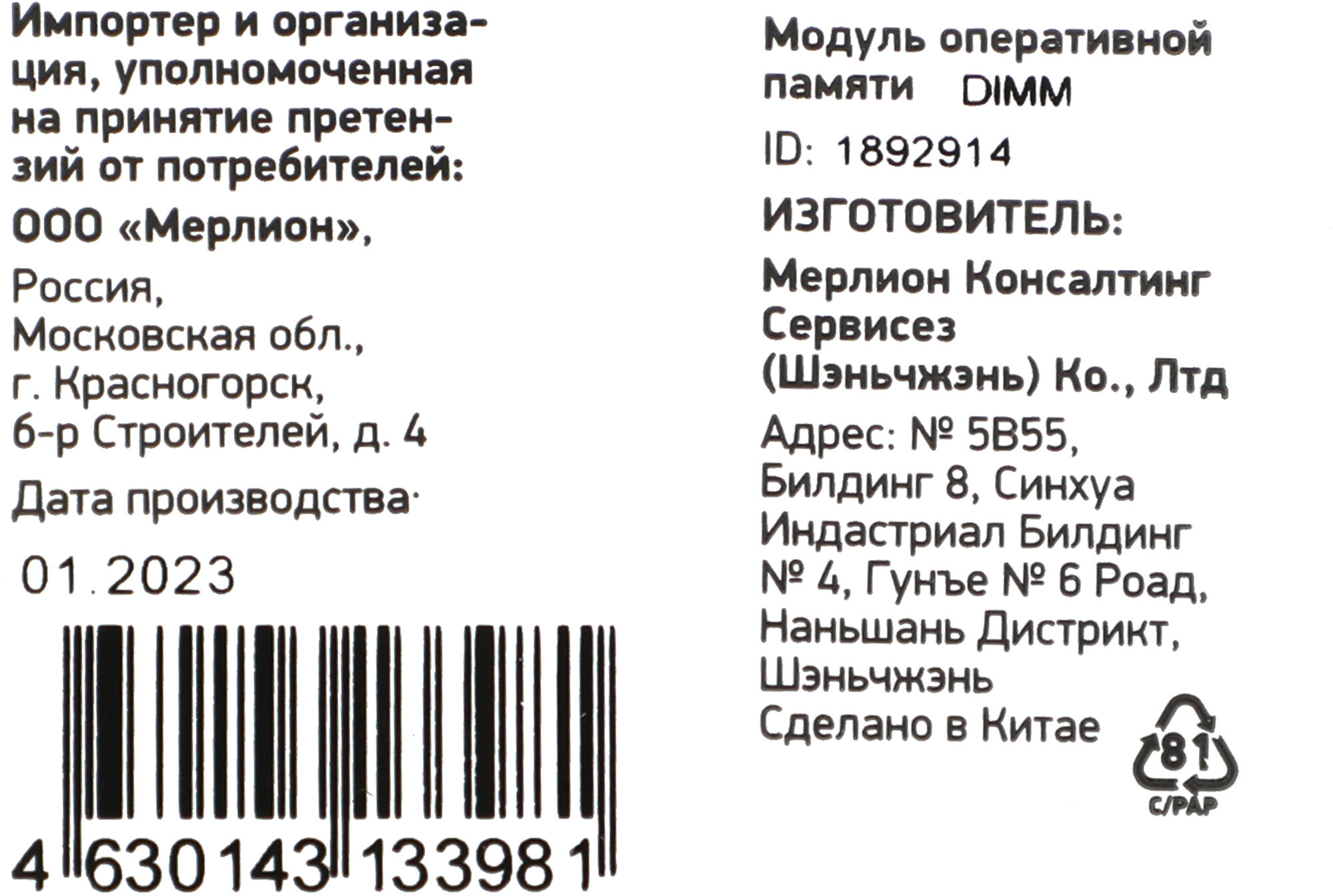 | Количество модулей в комплекте | 1 шт. |