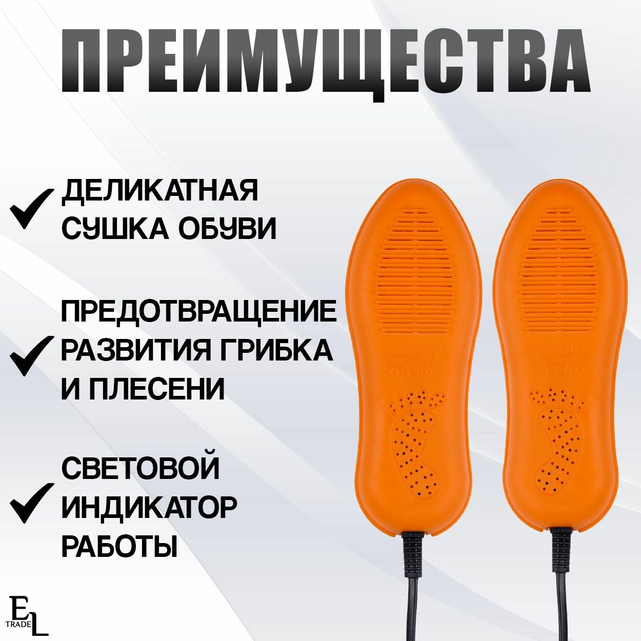 | Минусы: | Долго просушивает обувь |
